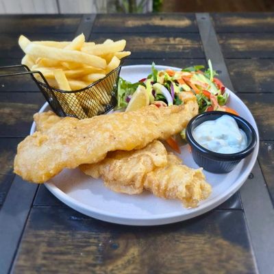 battered fish fillet served w. chips & tartare sauce