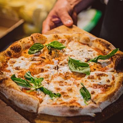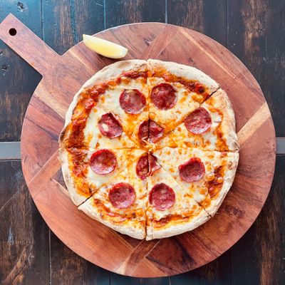 pepperoni, chilli oil, lemon, cheese on a tomato base
