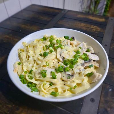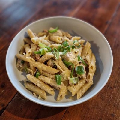 penne served w. chicken & a creamy bacon mushroom sauce