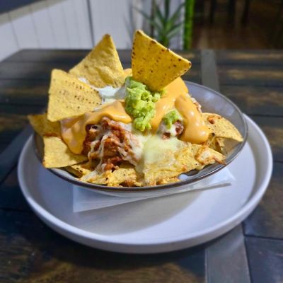 spicy beef mix served on corn chips w. cheese topped w. pico de gallo, guacamole & sour cream
